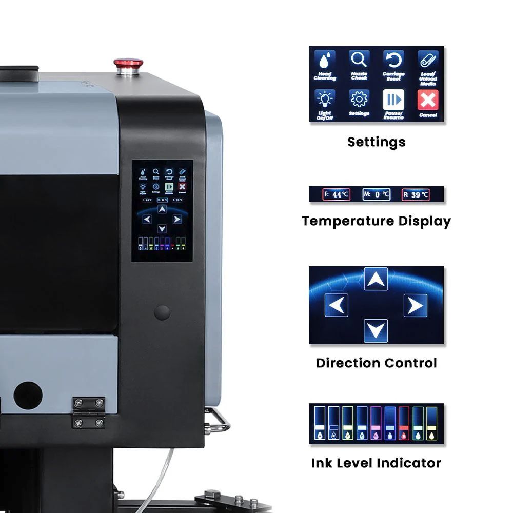 Introducing our advanced 24” Direct to Film (DTF) printer, designed for professionals seeking the highest color accuracy and a vast color gamut. Equipped with 8-color printing (CMYK + Red, Green, Orange, and Blue), this printer delivers vibrant, true-to-life prints that exceed the capabilities of standard DTF machines. Its 24” width offers ample space for large or intricate designs in a compact size compared to other similar printers. The built-in maintenance suite ensures hassle-free operation, from easy cleaning to simple repairs. Expand the reach of your creativity with this cutting-edge solution. Plus, save when you bundle with one of DTF Station’s powder shakers and dryers for truly automatic DTF printing!