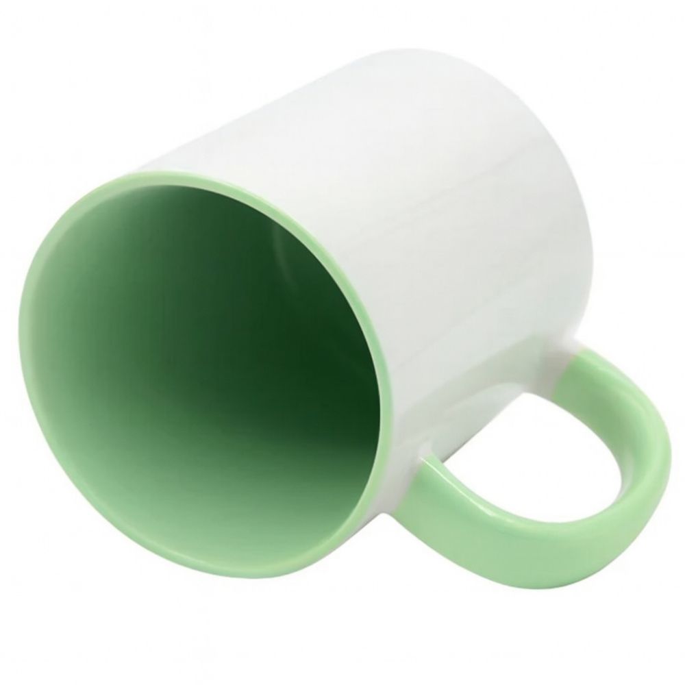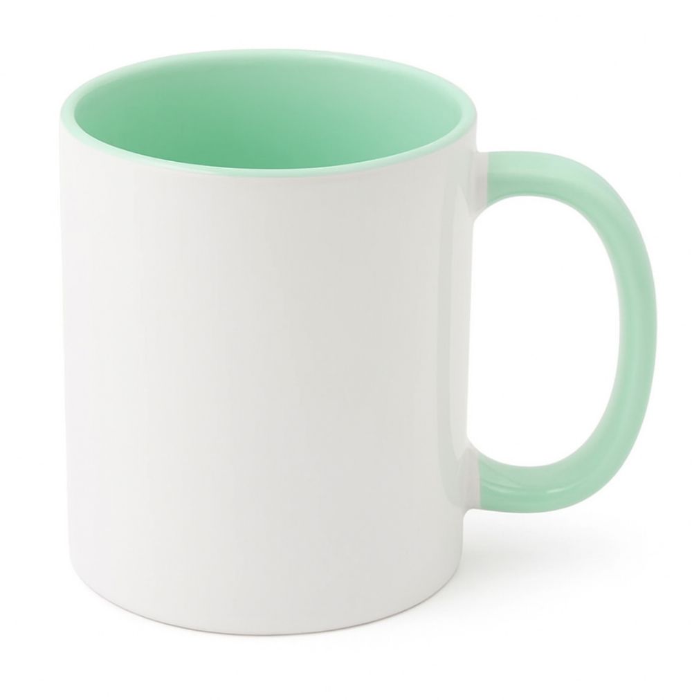 Brighten up your custom drinkware collection with the IronClad  11oz Ceramic Mug featuring a refreshing mint green interior and handle. This lively color adds a cheerful touch to any design, making it perfect for personalized gifts, promotional items, or special occasions. Made from premium ceramic with a glossy finish, this mug ensures sharp, vivid sublimation prints every time.